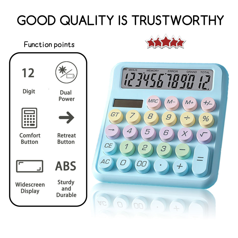 Mayorista Botones Grandes de 12 Dígitos Pantalla LCD Colorido Arco Iris Teclado Mecánico Calculadora Solar con Fuente de Alimentación de Batería