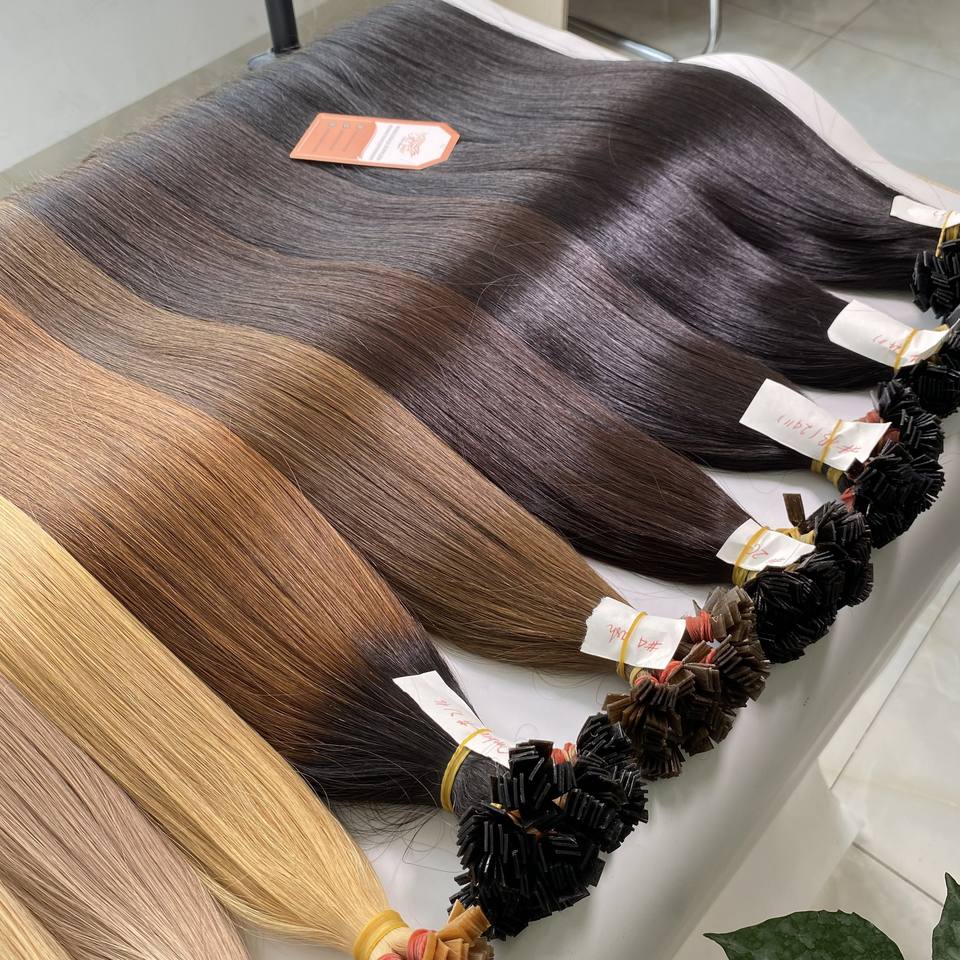 Extensiones de Cabello Humano Natural Vietnamita Remy Virgen con Punta Plana de Queratina, Color Personalizado, Trama Simple 12A, Cutícula Alineada, Venta al Por Mayor