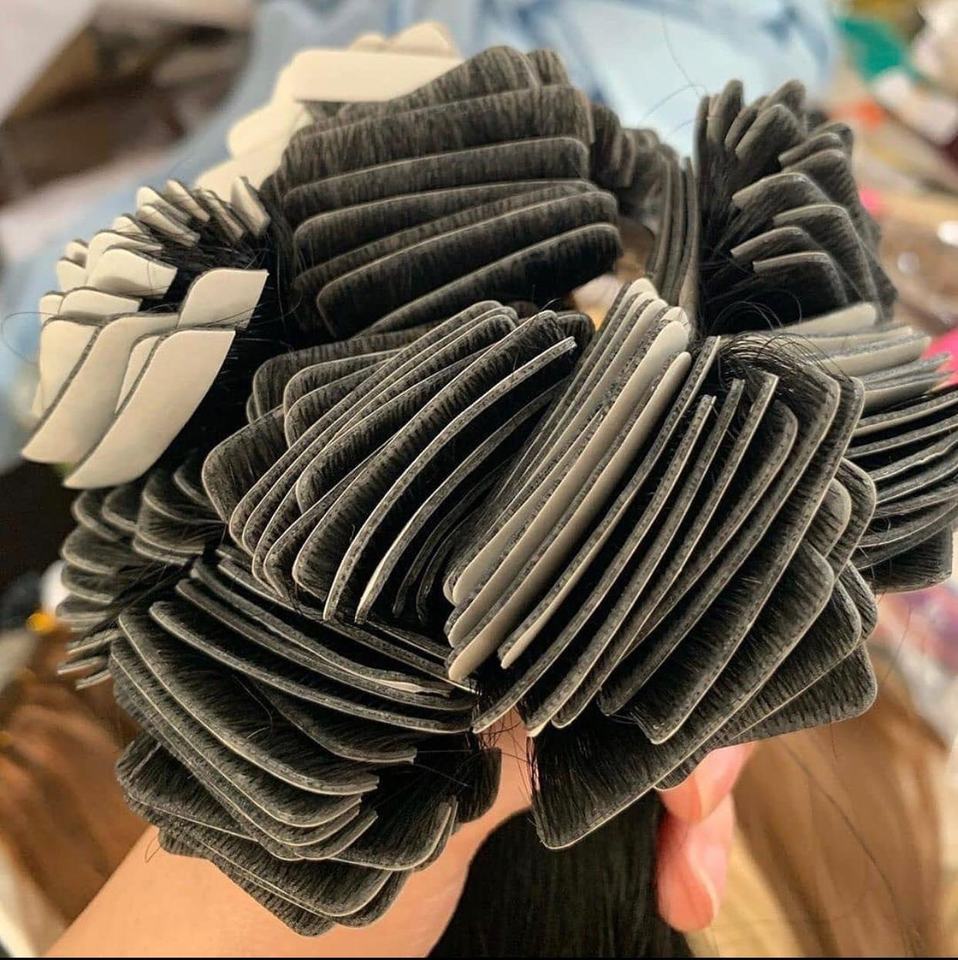 Trama atada a manoTipo de extensión de cabello