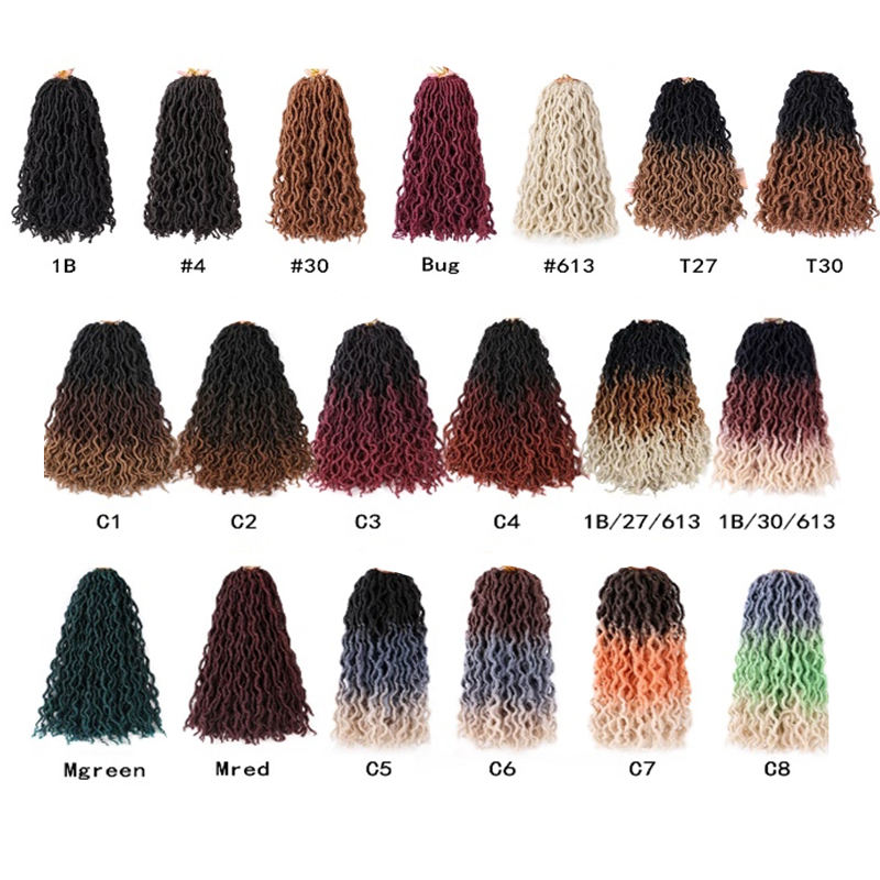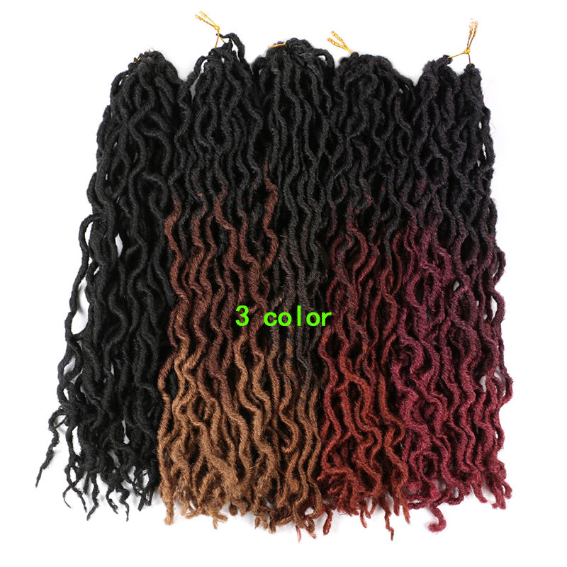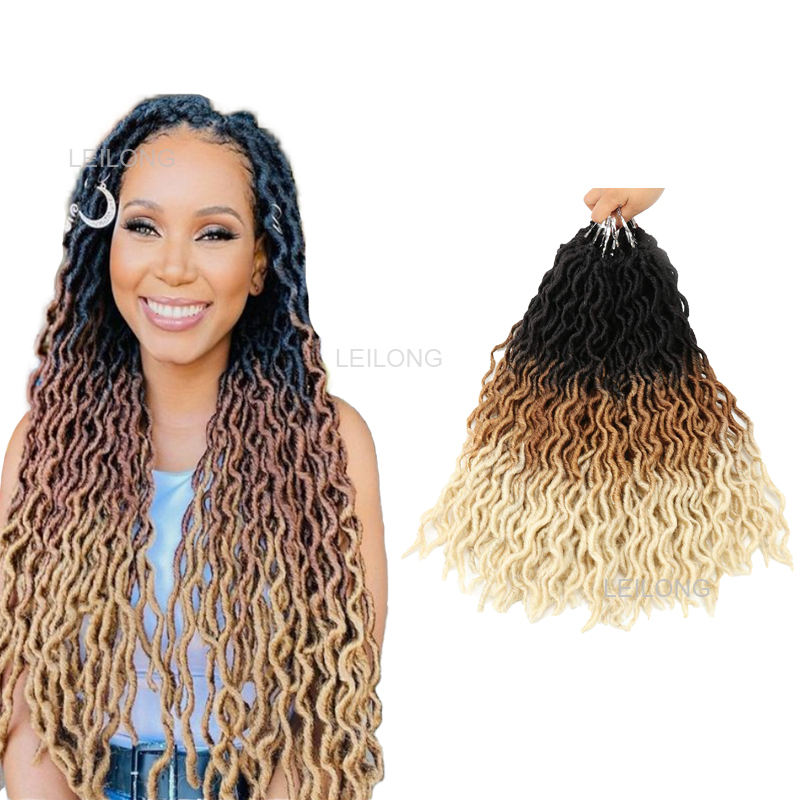 Venta al por mayor 14-18 pulgadas sintético suave gitano Locs ombre Dread Faux LOCs ganchillo trenzas ondulado diosa Locs ganchillo extensiones de cabello
