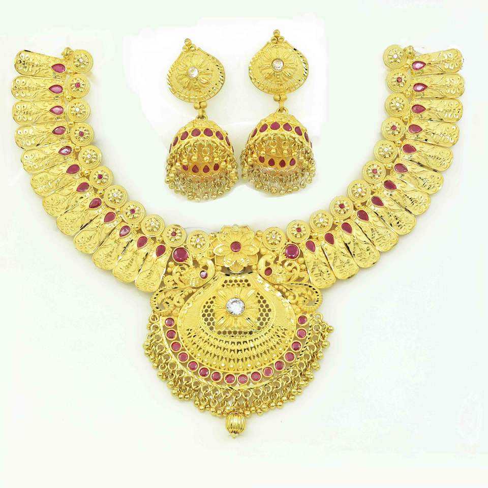 Juego de Collares Chapados en Oro de 14K, 18K y 24K al por Mayor, Collares Cortos con Diseño Floral Tradicional, Collares de Moda de Latón Dorado