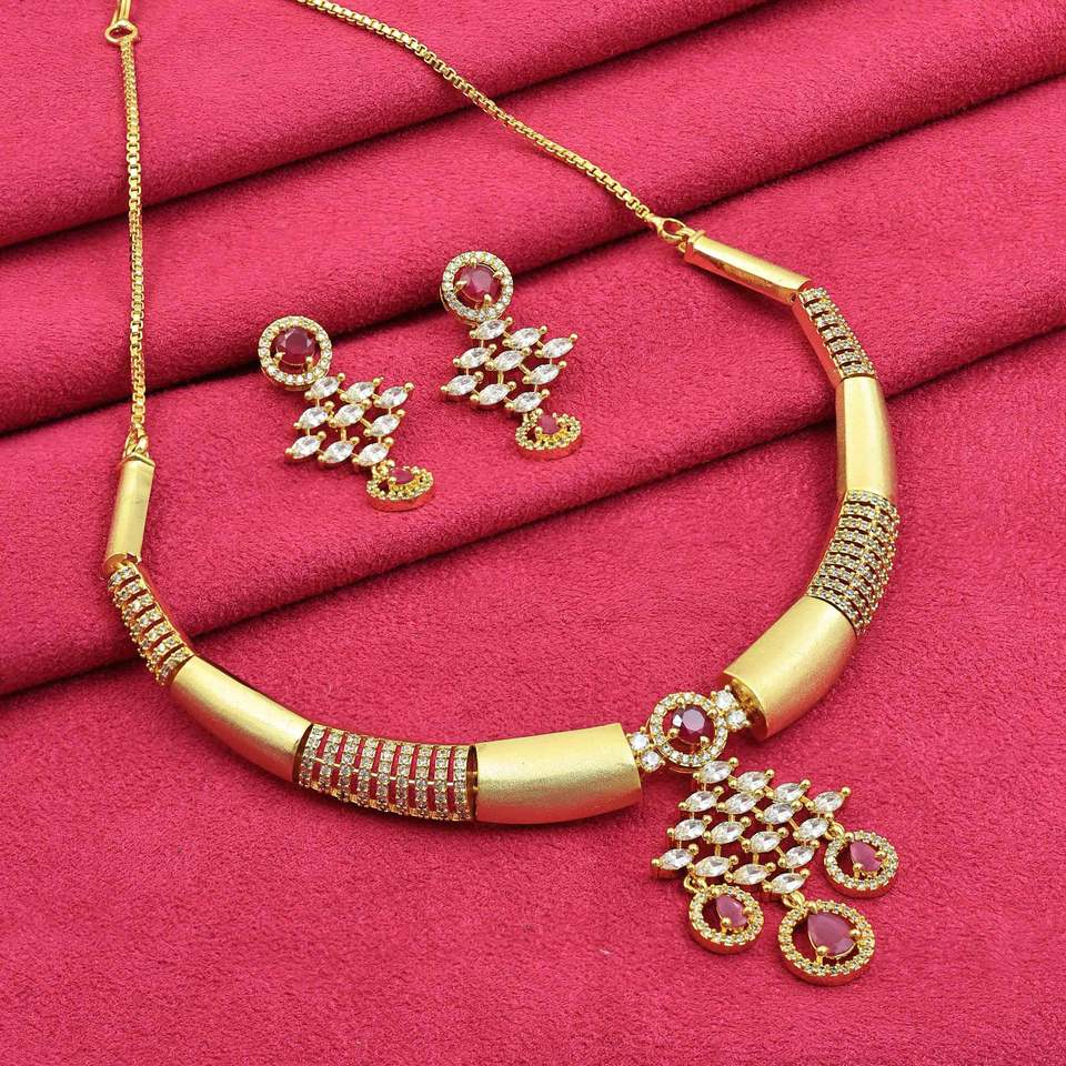 14K 18K 24K Micro Gold Plated Matte Forming AD & Ruby Stone NecklacesTipo de collares