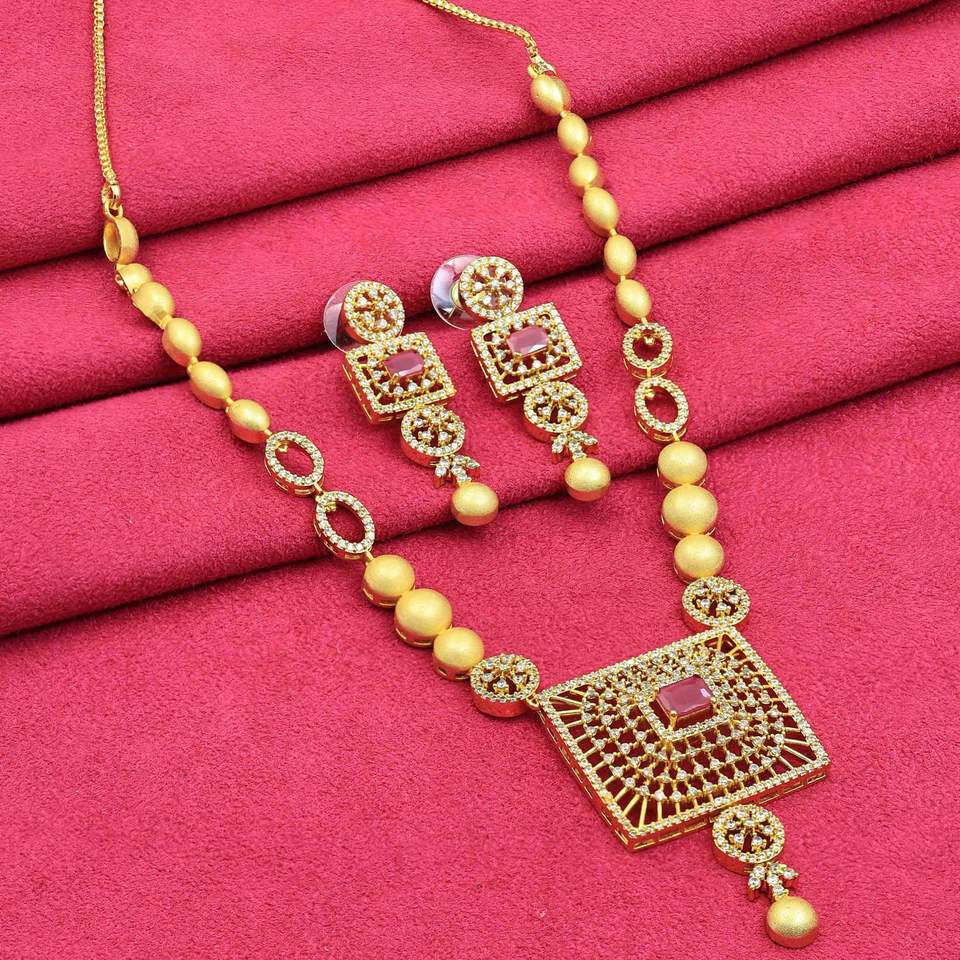 14K 18K 24K Micro Gold Plated Matte Forming AD & Ruby Stone NecklacesTipo de collares
