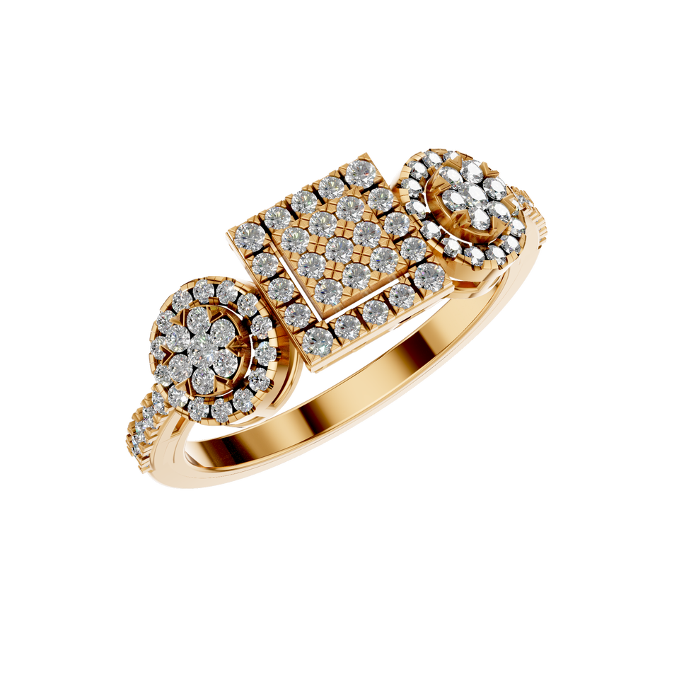 Estilo:Anillo Cuadrado de Triple Motivo y Racimo Floral