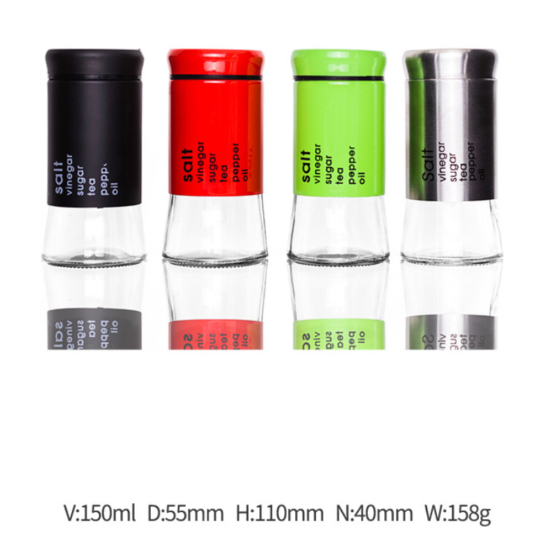 Venta al por mayor 150ml vacío redondo cocina hornear asar sal pimienta contenedor de almacenamiento de vidrio botella de especias