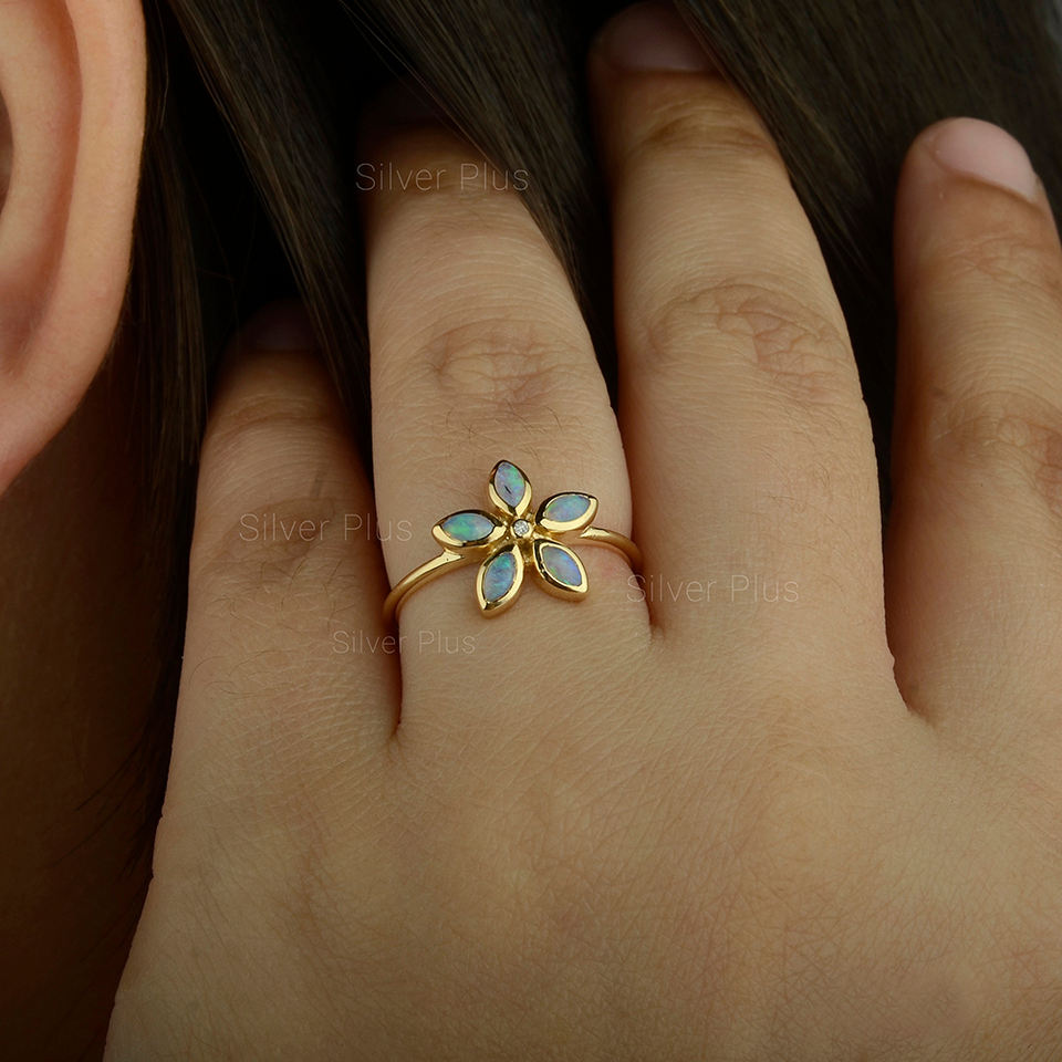 Nombre del producto:Flor Oro sólida 18K Anillo