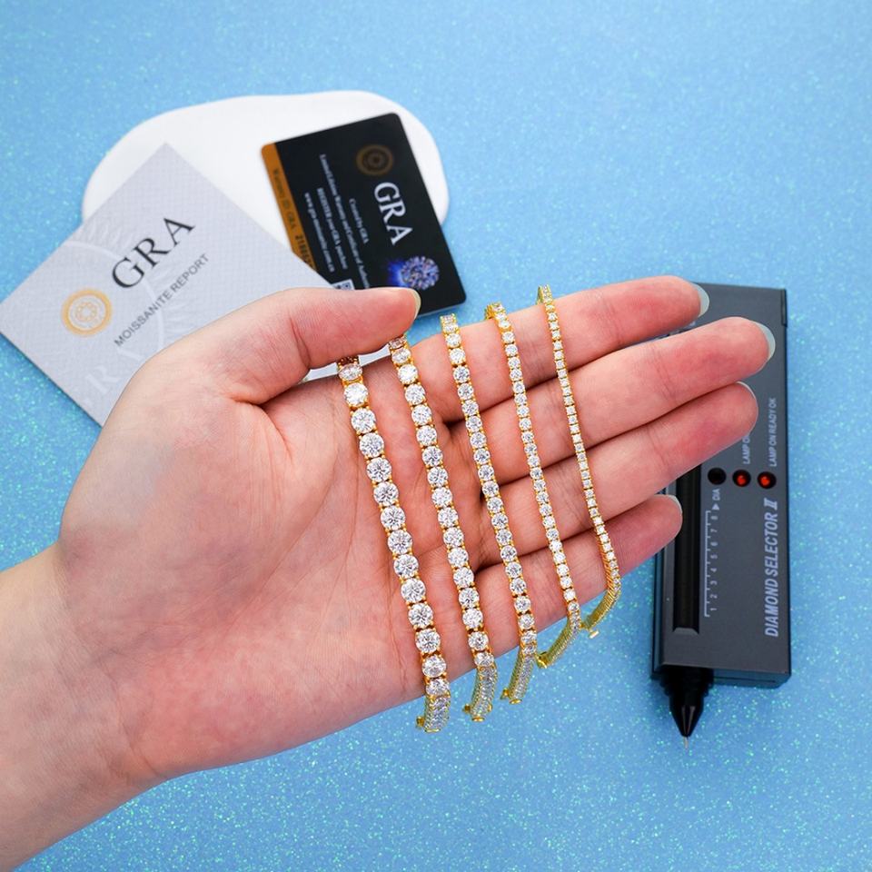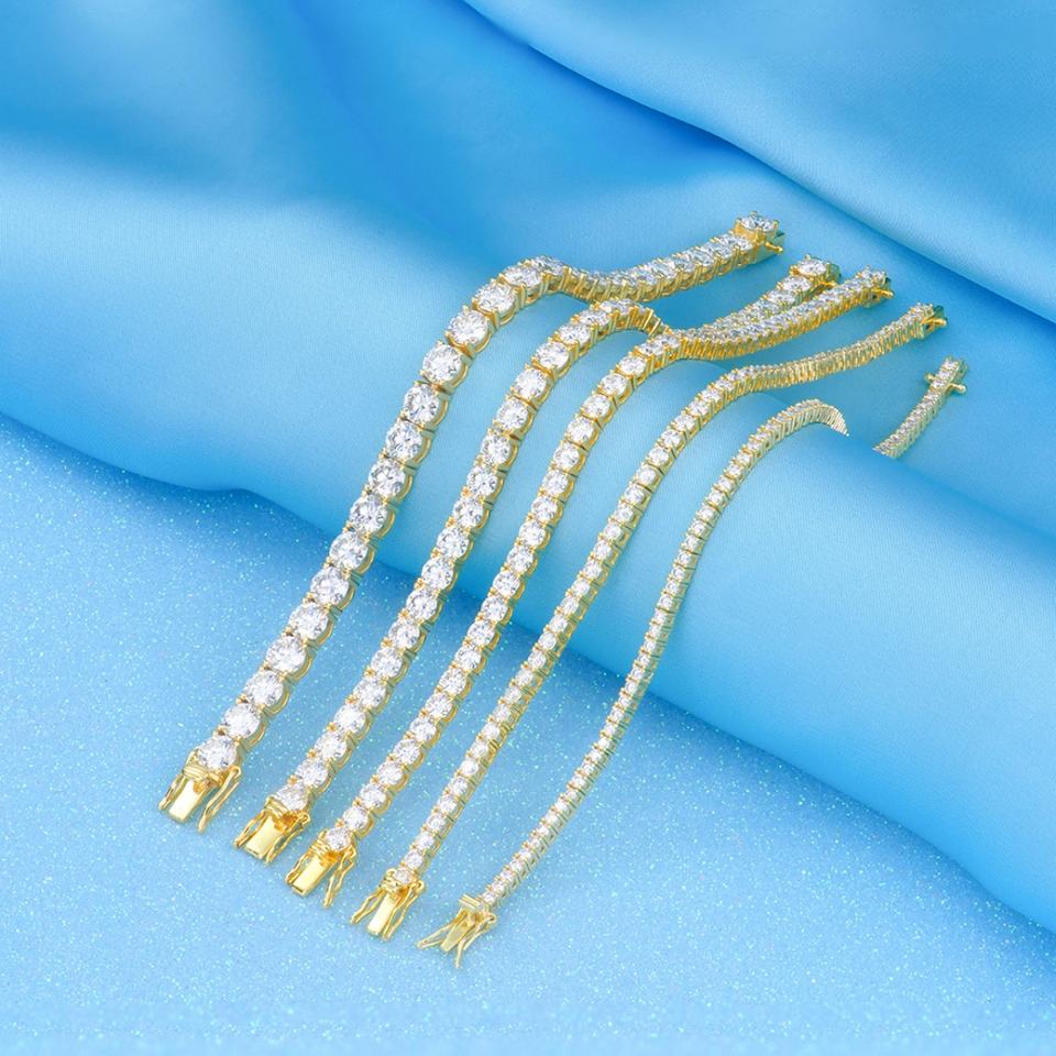 Pulsera de Cadena de Tenis de Plata de Ley 925 con Baño de Oro Amarillo y Moissanita Certificada, Estilo Hip Hop para Mujer, de 2-6 mm, Venta al por Mayor