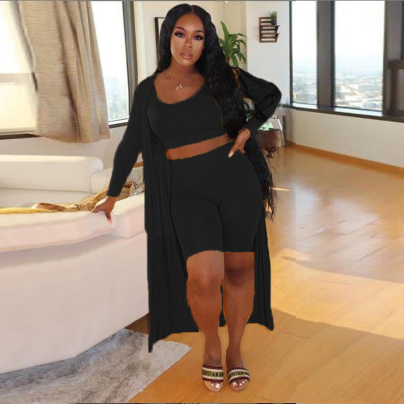 Venta al por mayor 2022 nuevo Color sólido conjunto de tres piezas logotipo personalizado corto de 2 piezas conjunto Sexy Bodycon Plus tamaño de las mujeres