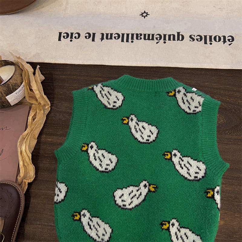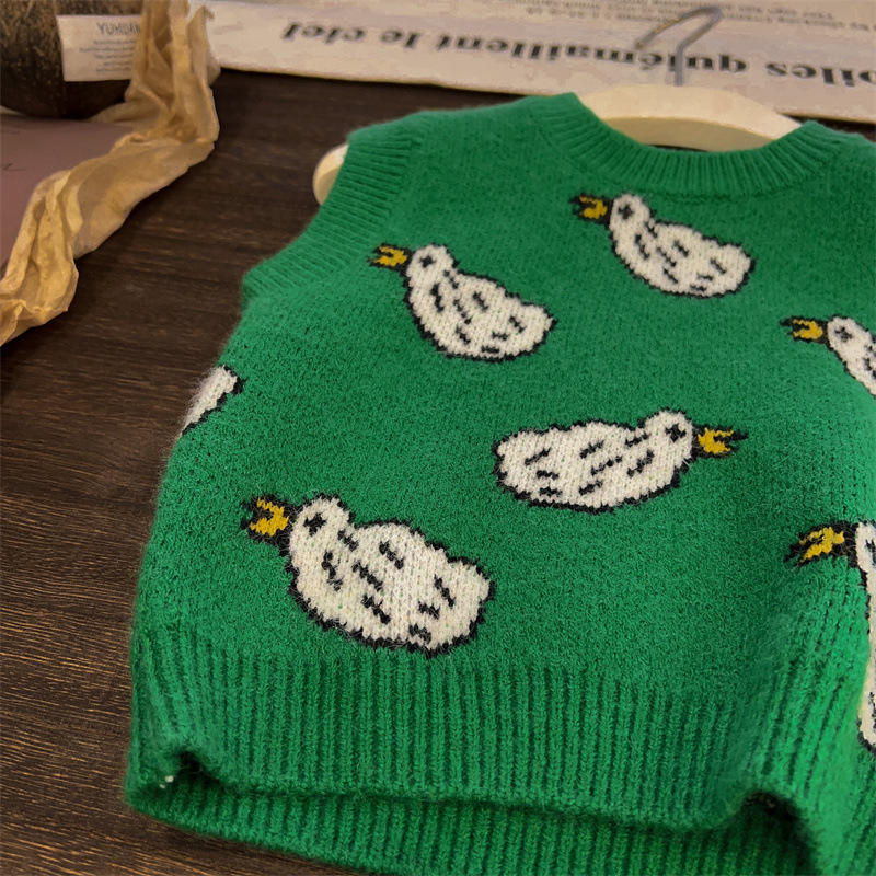Nombre del producto:Venta al por mayor 2023 otoño pato niños verde Chaleco de punto