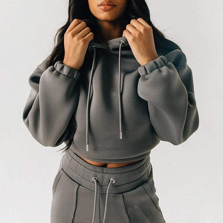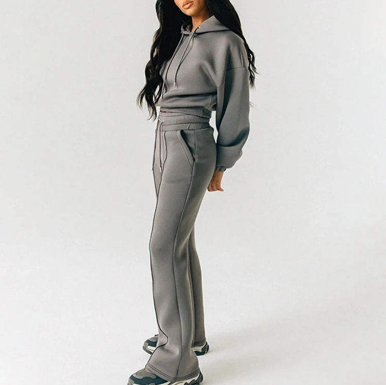 Venta al por mayor 2025 precio barato personalizado Joggers pantalones conjuntos de las mujeres Crop Top Sudadera con capucha chándal para las mujeres