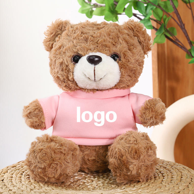 Camiseta con logotipo personalizado de oso de peluche supersuave de 23cm al por mayor, forro de malla relleno de algodón PP de tela de algodón ODM para cumpleaños