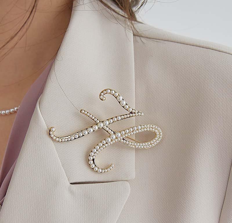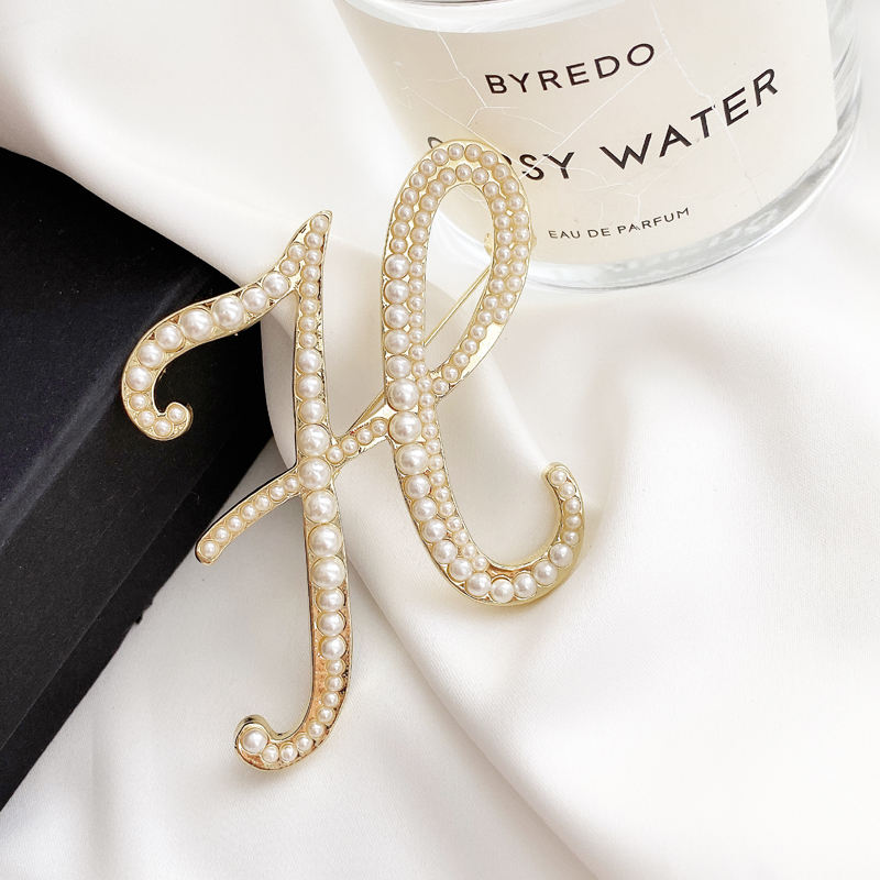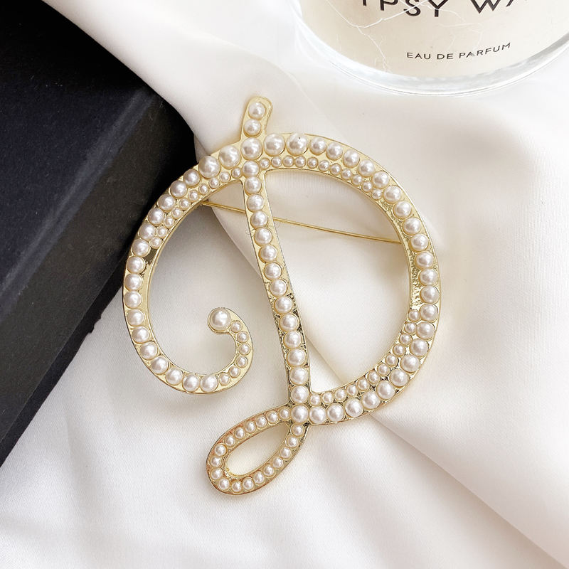 Broche de boda con perlas incrustadas cc para mujer, 26 letras en inglés, accesorios de ropa