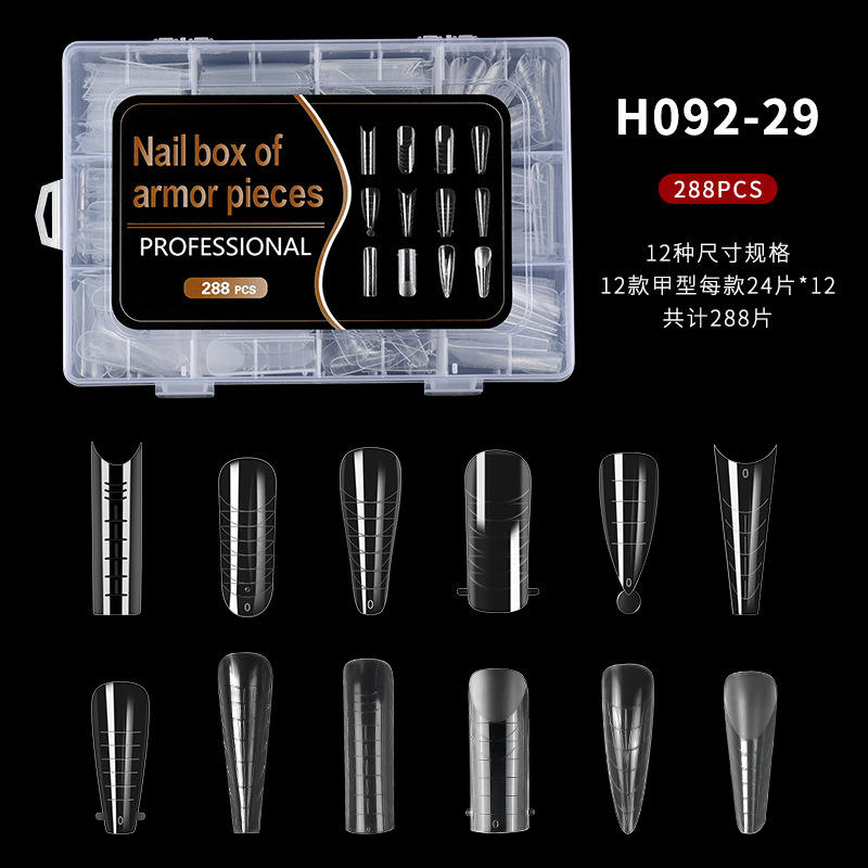Venta al por mayor 288 Uds modelos de uñas acrílicas mezcladas con 12 tipos de cristales de extensión transparentes Stiletto patrón dedo puntas caja