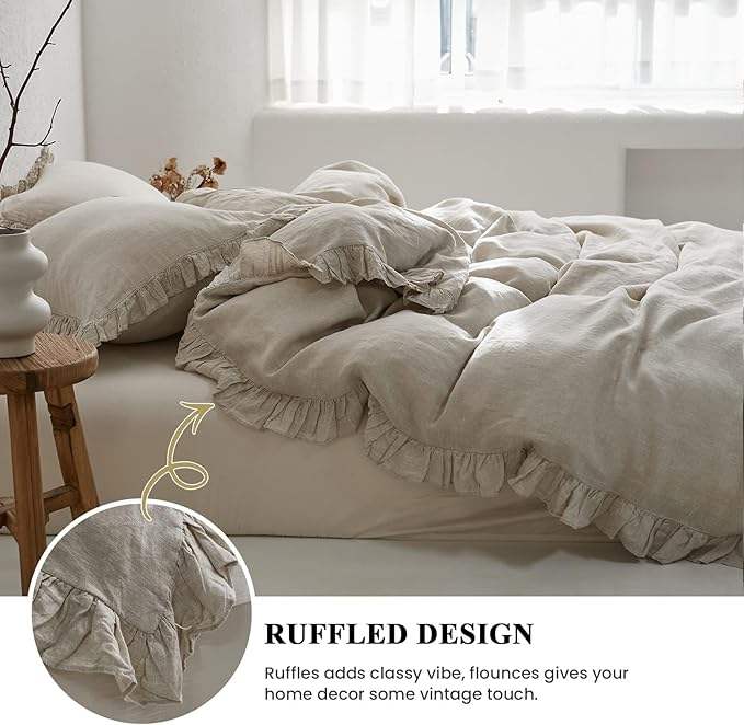 Juego de Funda Nórdica de Algodón Sólido con Volantes, 3 Piezas, Tamaños Queen, King, Cal King, 200 Hilos, Estilo Europeo Lavado, para Hogar, Boda, Hospital, Venta al por Mayor