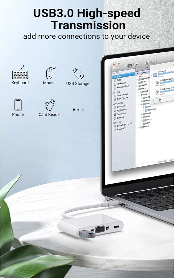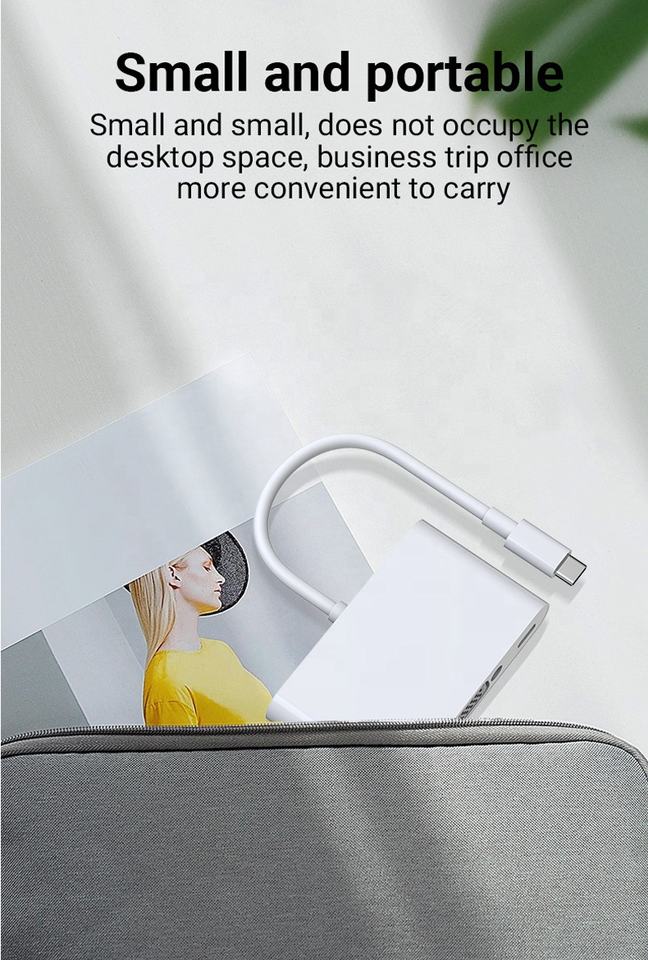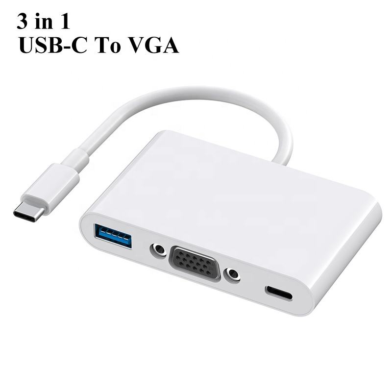 Venta al por mayor 3 en 1 Adaptador convertidor multipuerto tipo C a VGA para Macbook iPhone 15 16 Notebook
