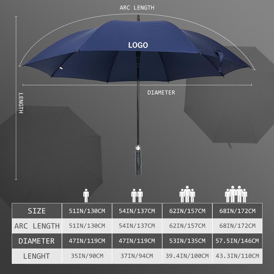 Venta al por mayor de 30 pulgadas de gran logotipo a prueba de viento imprime gran paraguas de golf personalizado de marca promocional de lujo