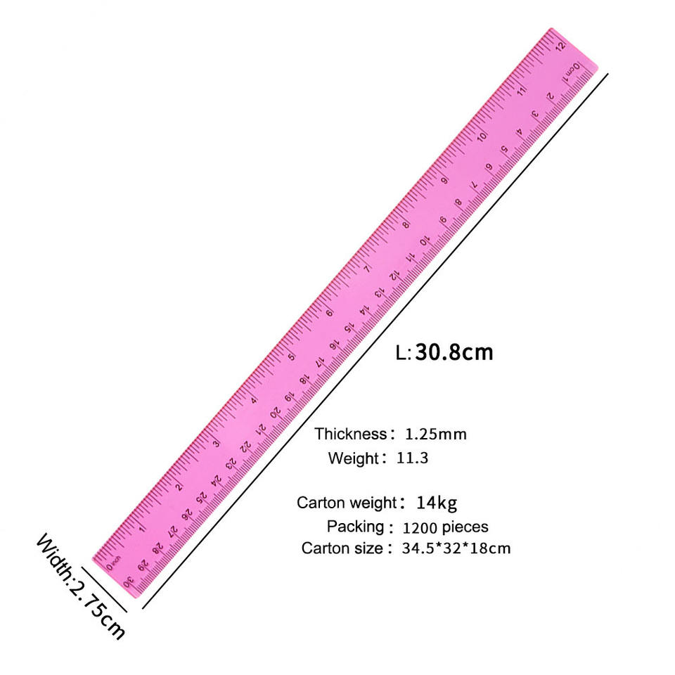 Regla recta de plástico transparente multicolor para estudiantes populares de 30 cm al por mayor para papelería de oficina y escuela