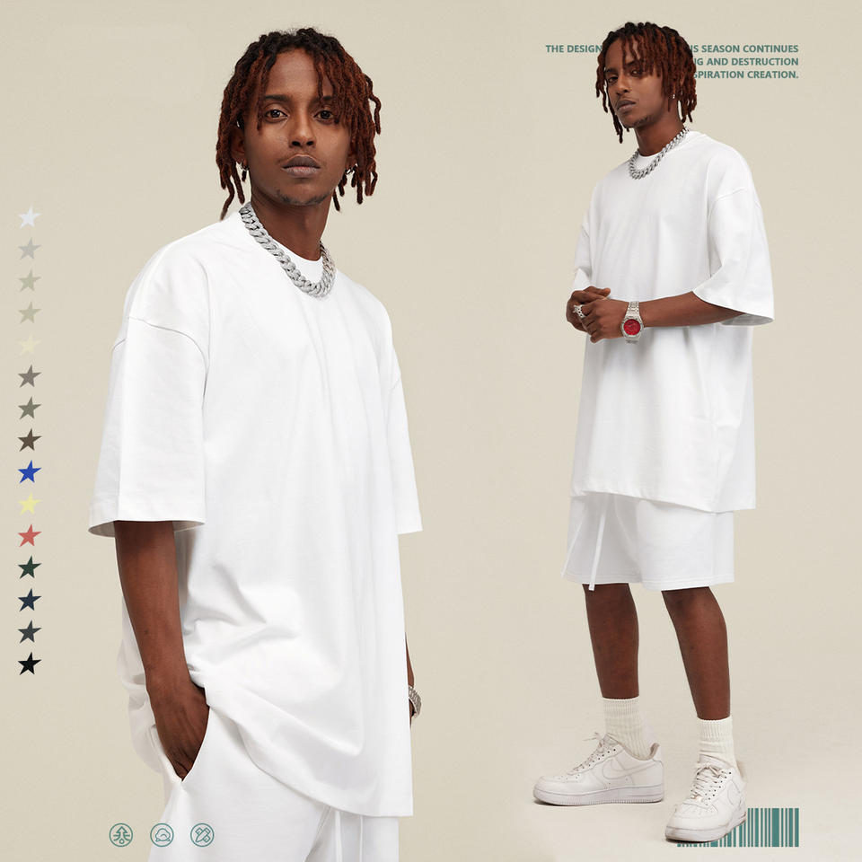 Venta al por mayor 305G 100% algodón Color tierra peso pesado camiseta hombres calle moda marca sólido algodón camiseta para hombres