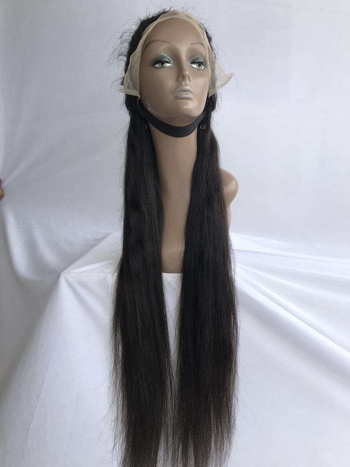Nombre del producto:Venta al por mayor 32 'natural recta 13x4 HD Encaje peluca India templo
