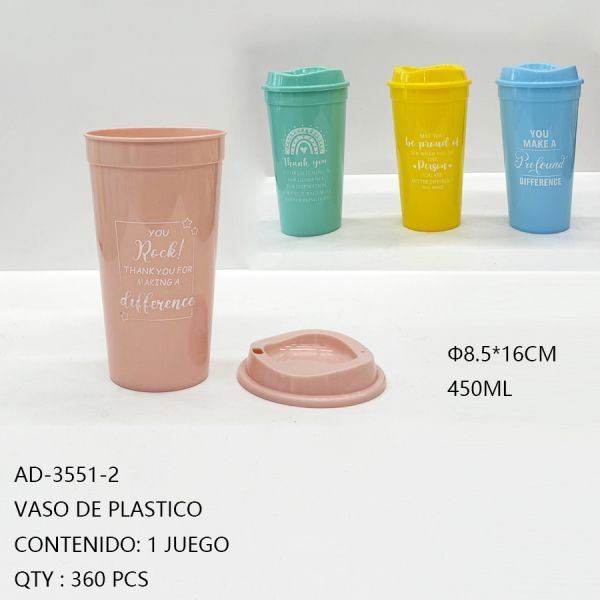 Vasos de Plástico CASAMAX WL AD-3551-2 de 450 ml con Tapas, Artículos para Bebidas, Lujosos, Modernos, Clásicos, Creativos y Portátiles