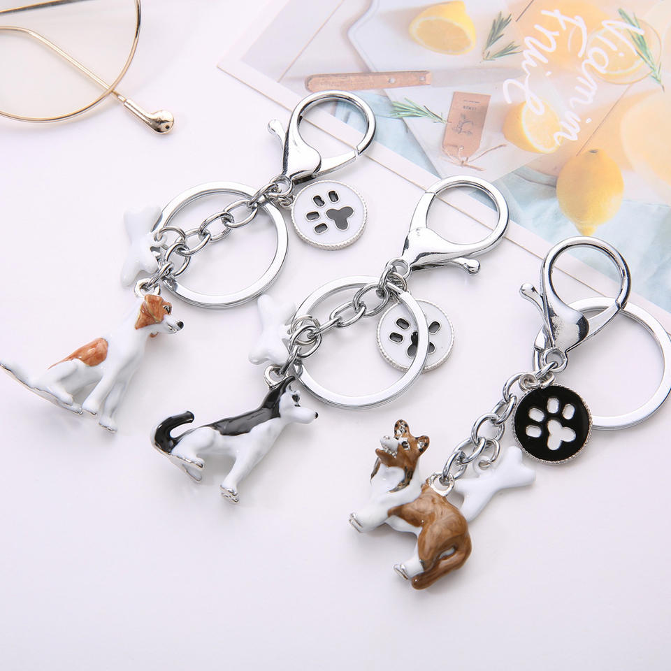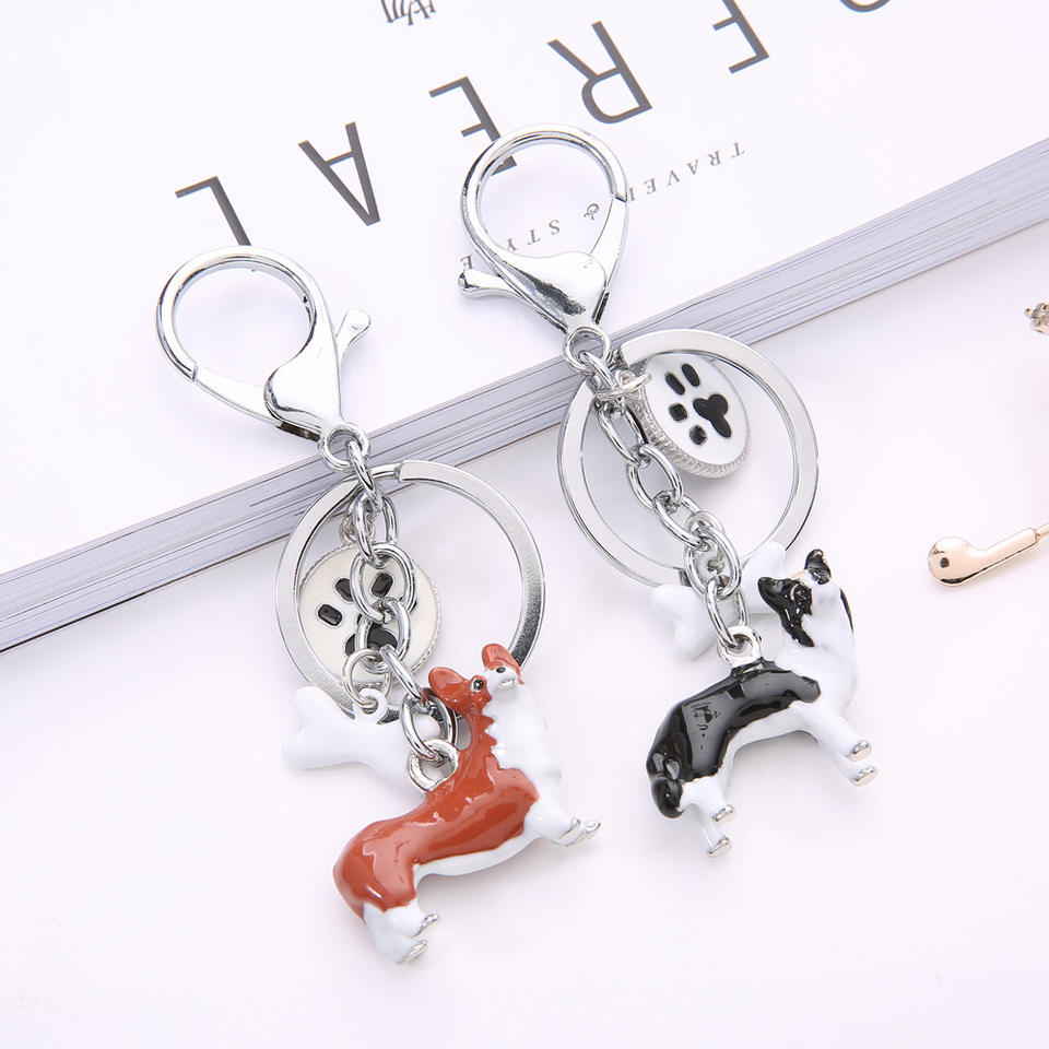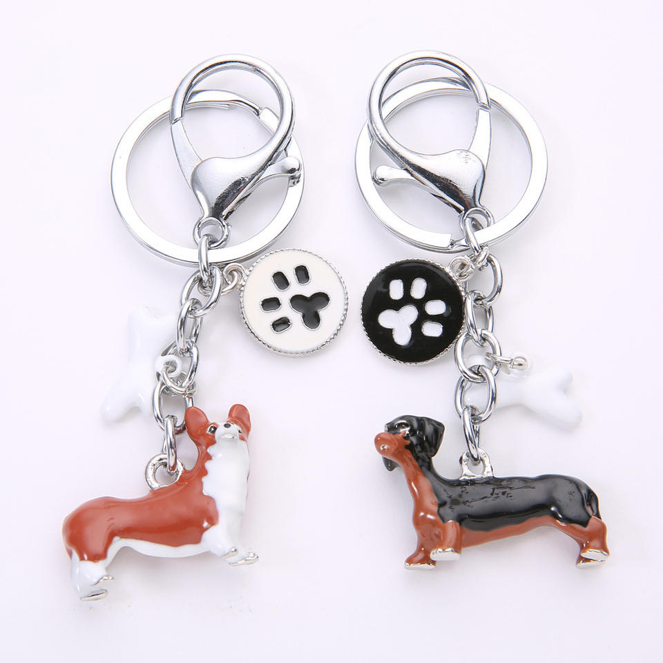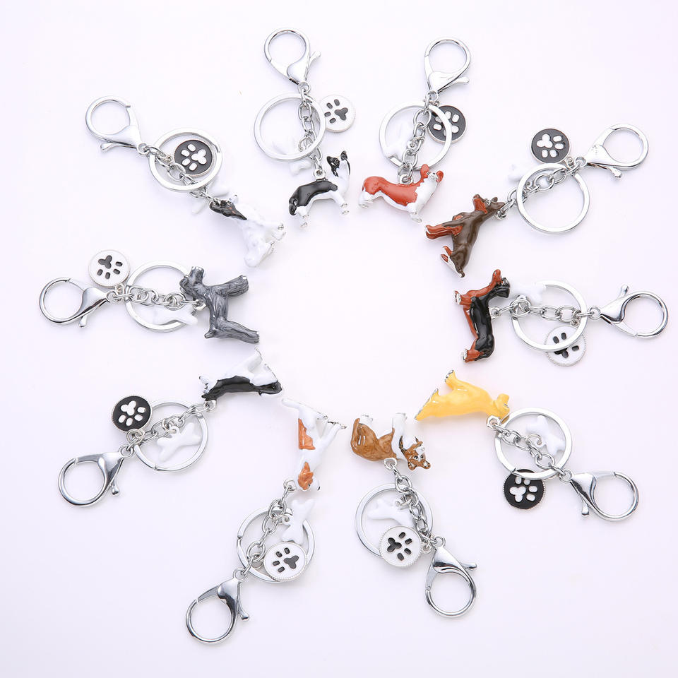 Venta al por mayor 3D perro llavero Metal cachorro colgante llavero Corgi Pastor Beagle mascota recuerdo llavero bolsa decoración colgante