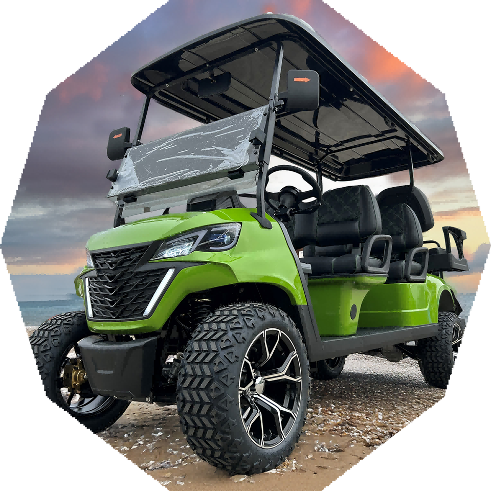 Buggies de golf eléctricos de 4 + 2 asientos al por mayor, carrito de golf de lujo con 4 ruedas y batería de litio de 72V