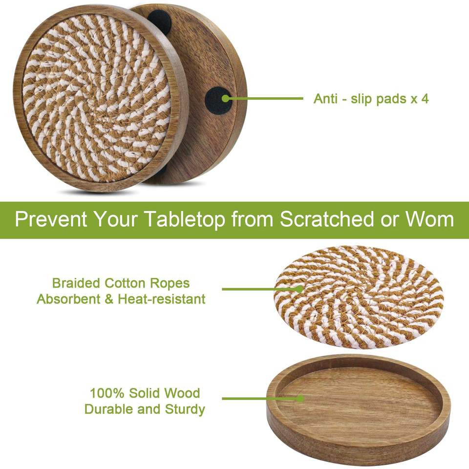 Product name:Reusable Wooden 4.3 inches Woven Drink Coasters
