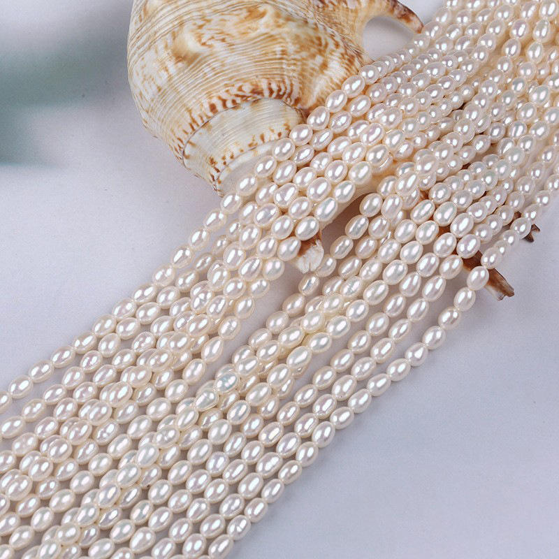 Collar de Perlas Blancas Naturales de Agua Dulce de 4-5 mm al por Mayor, Cuentas de Arroz de Luz Intensa, Hechas a Mano, para Joyería DIY