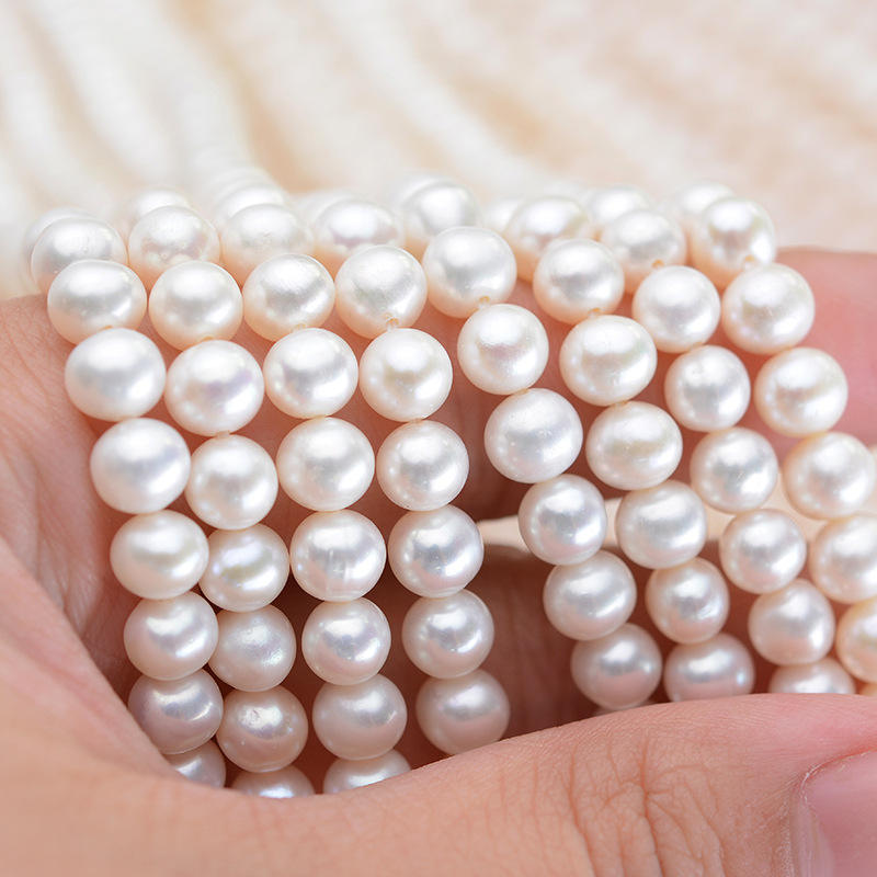 Collar de Perlas de Agua Dulce Blancas Casi Redondas de 5-6 mm al por Mayor, Perlas Sueltas de Joyería Semiterminadas, Casi Perfectas, Micro Ligeras y Naturales
