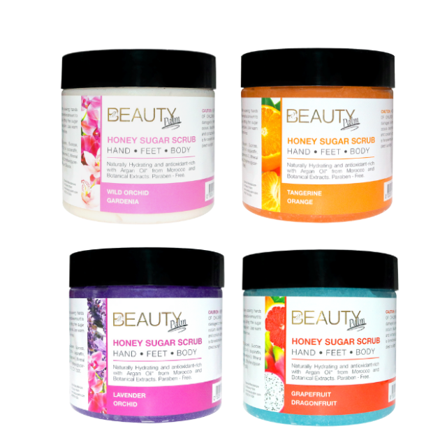 Venta al por mayor 550gm cuidado de la piel orgánico personalizado exfoliante corporal miel azúcar lavanda exfoliante OEM