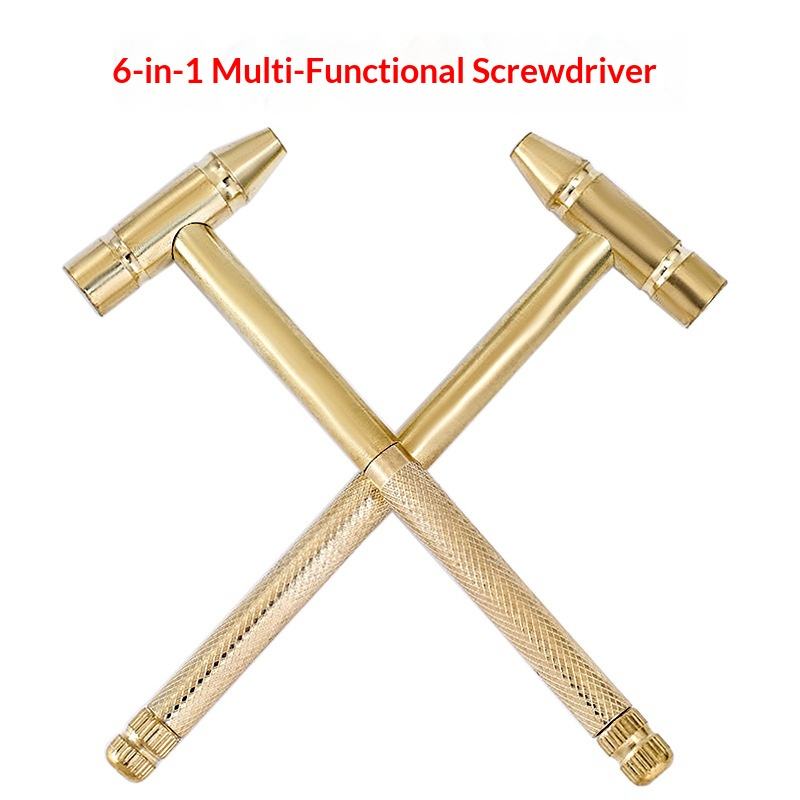 Juego de Destornilladores y Martillo Mini 6 en 1, Herramienta Manual Desmontable de Cobre Dorado para Proyectos de Bricolaje, Venta al Por Mayor