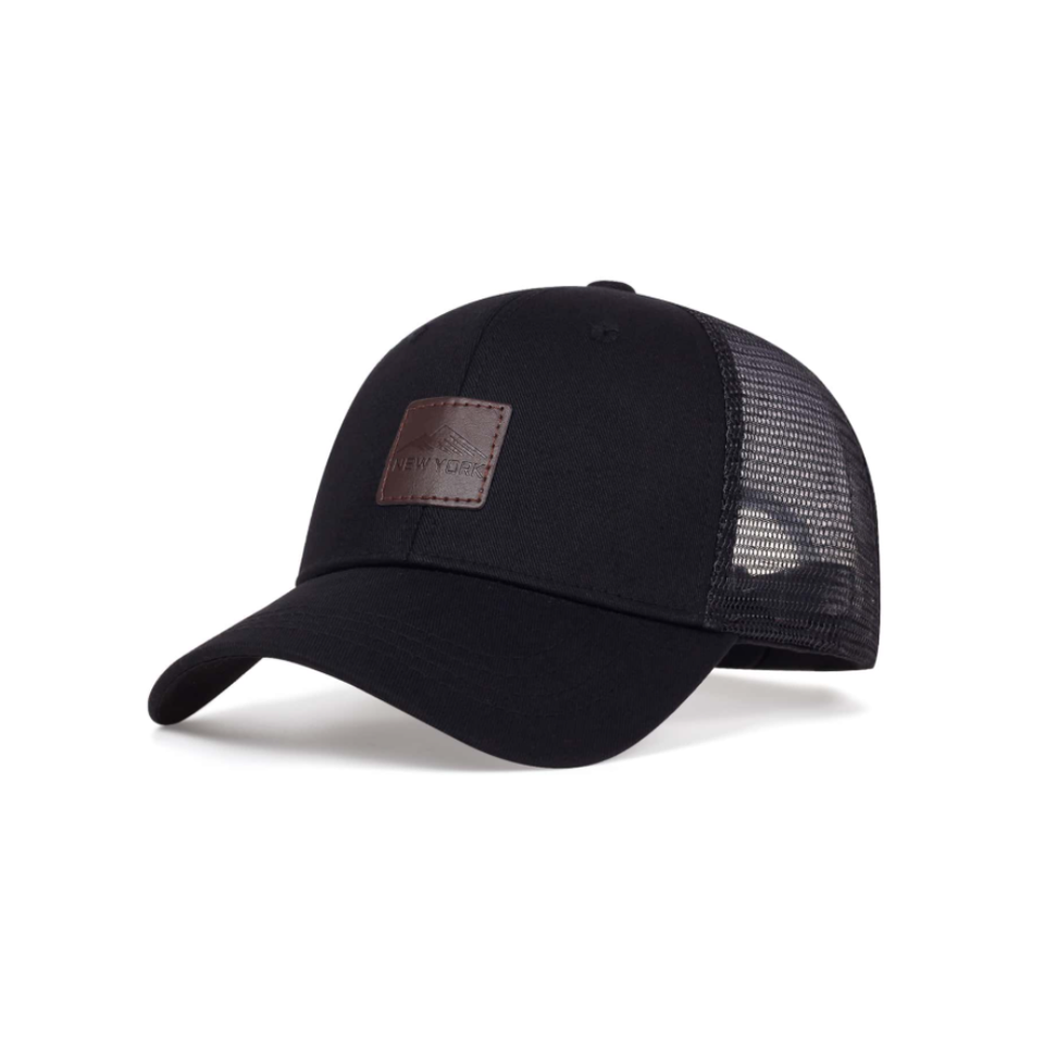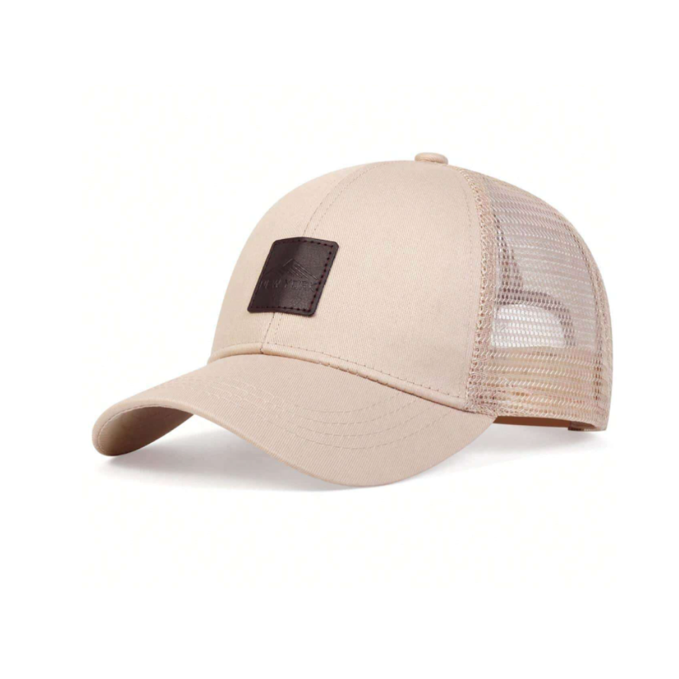 Gorra de camionero unisex de 6 paneles al por mayor con parche de cuero personalizado con ala curva y malla trasera cómoda para deportes al aire libre y viajes