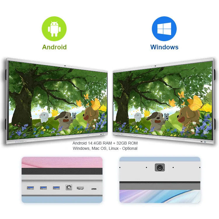 Pizarra Inteligente Android 16 4K de 65 Pulgadas al por Mayor con Pizarra Digital IA, Pantalla Dividida en 4 para Reuniones de Negocios, 500 Nits, FCC/CE