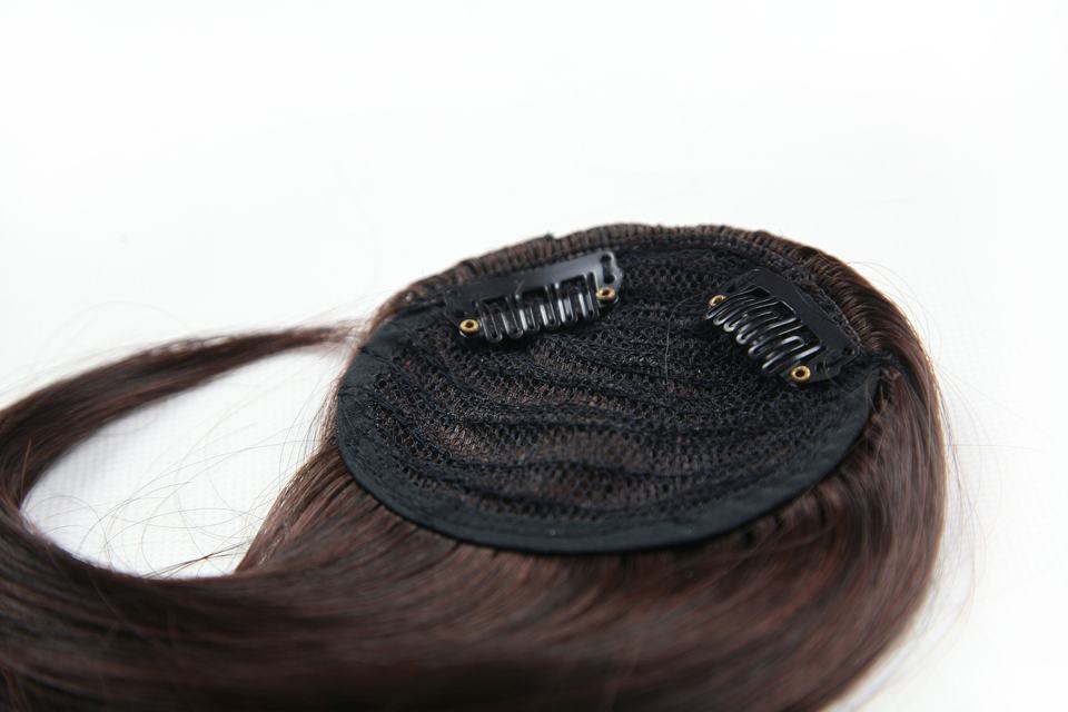 Venta al por mayor 8 pulgadas limpio Romo Clip frontal flequillo corto Natural Postizos grueso pelo sintético liso con estilos de flecos