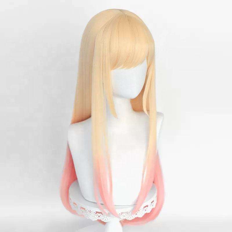 Peluca de Cosplay de Anime Sintética al por Mayor de 80 cm de Largo, Lisa, Teñida, de Color Mixto, Estilo My Dress-Up Darling Kitagawa Marin