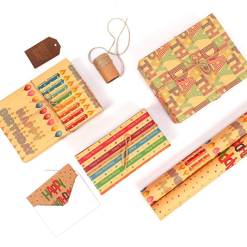 Venta al por mayor 80g cumpleaños papel Kraft 43*300cm regalo de lujo embalaje personalizado rollo de papel de regalo