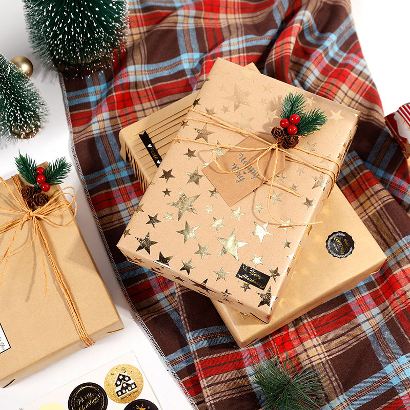 Venta al por mayor 80g papel Kraft de Navidad 43*300cm regalo embalaje personalizado de lujo rollo de papel de regalo