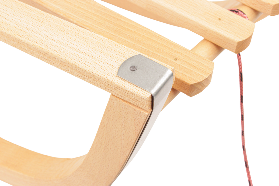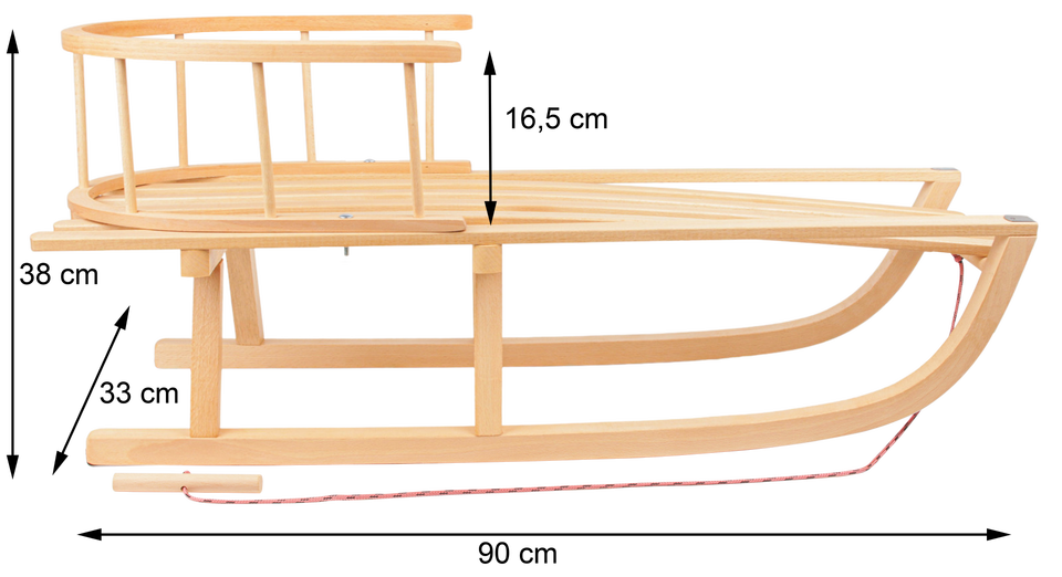 Trineo tradicional de madera de haya europea de 88cm al por mayor, equipo deportivo de invierno de primera calidad con respaldo extraíble para tubos de nieve