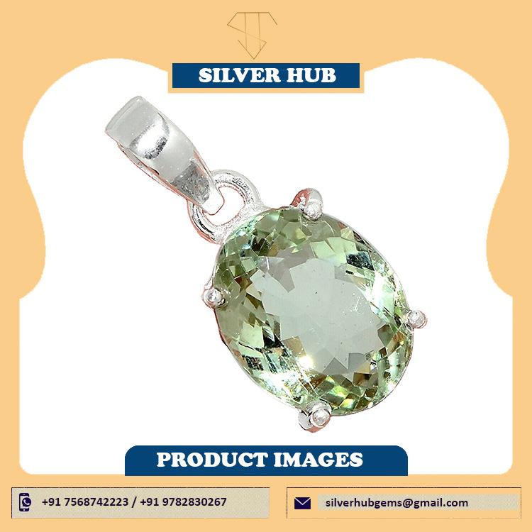 Keyword:Green Amethyst Natural Gemstone Pendant Solid Silver Handmade Jewelry