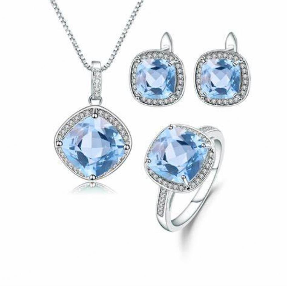 Forma del diamante:Conjunto de joyas de topacio azul