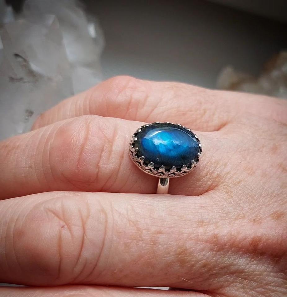Nombre del producto:Anillos Chapados en Plata con Labradorita Azul