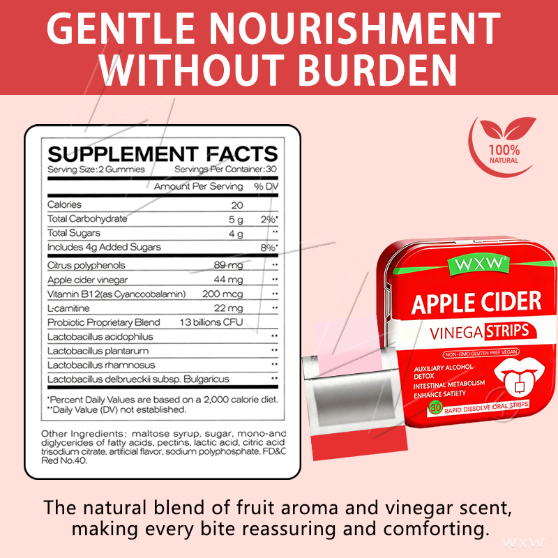Tiras Orales Adelgazantes de Vinagre de Sidra de Manzana al por Mayor, Extracto de Vinagre de Sidra de Manzana y Vitamina B6 para el Control del Apetito