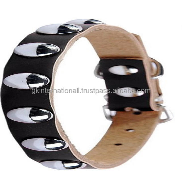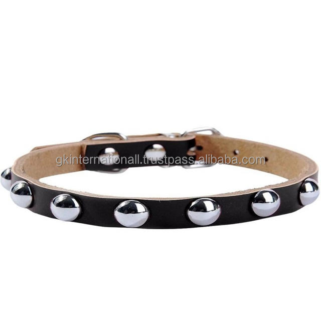 Collar de piel auténtica con tachuelas para perro, remache ajustable con acabado negro y accesorios de aleación de metal, venta al por mayor