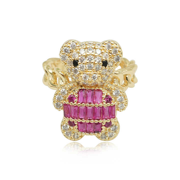 Anillos de Oso Teddy Ajustables con Circonitas al por Mayor, Joyería Chapada en Oro, Anillos de Hombre Estilo Hip Hop, Anillos Creativos de Osito Pequeño y Lindo para Regalos de Niña