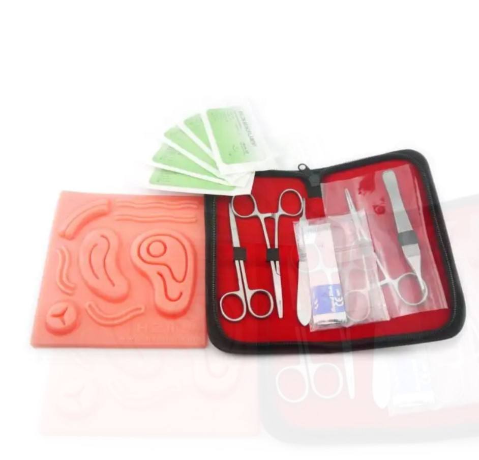 Kit de práctica para estudiantes de medicina y biología anatómica todo en uno al por mayor, almohadilla de práctica de sutura certificada, base de instrumentos quirúrgicos
