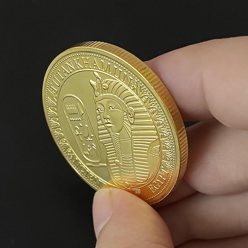 Venta al por mayor pirámides egipcias antiguas Tutankamón esfinge moneda conmemorativa chapado en oro Metal artesanía recuerdo