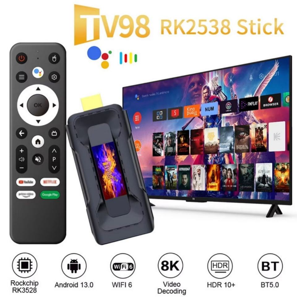 Android 13 TV Stick RK3528 4K 4GB+32GB 2.4G/5G WiFi con Control Remoto por Voz, Smart TV Stick de TV98, Venta al Por Mayor