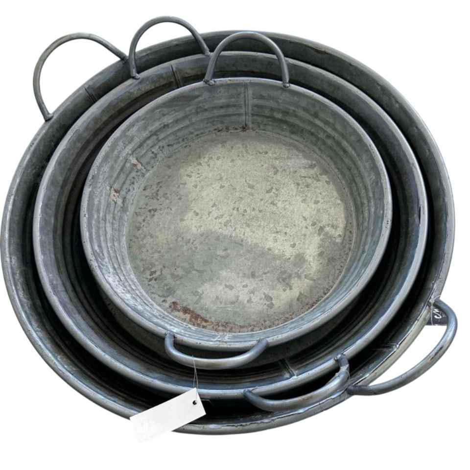 Bandeja rectangular de hierro galvanizado estilo antiguo al por mayor, bandeja vintage de metal para servir y exhibir con asas negras en oferta