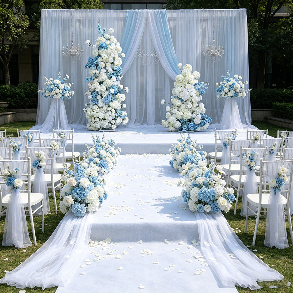 Flores Artificiales al por Mayor, Rosas Azules con Hortensias, Flores Artificiales para Fondo de Boda