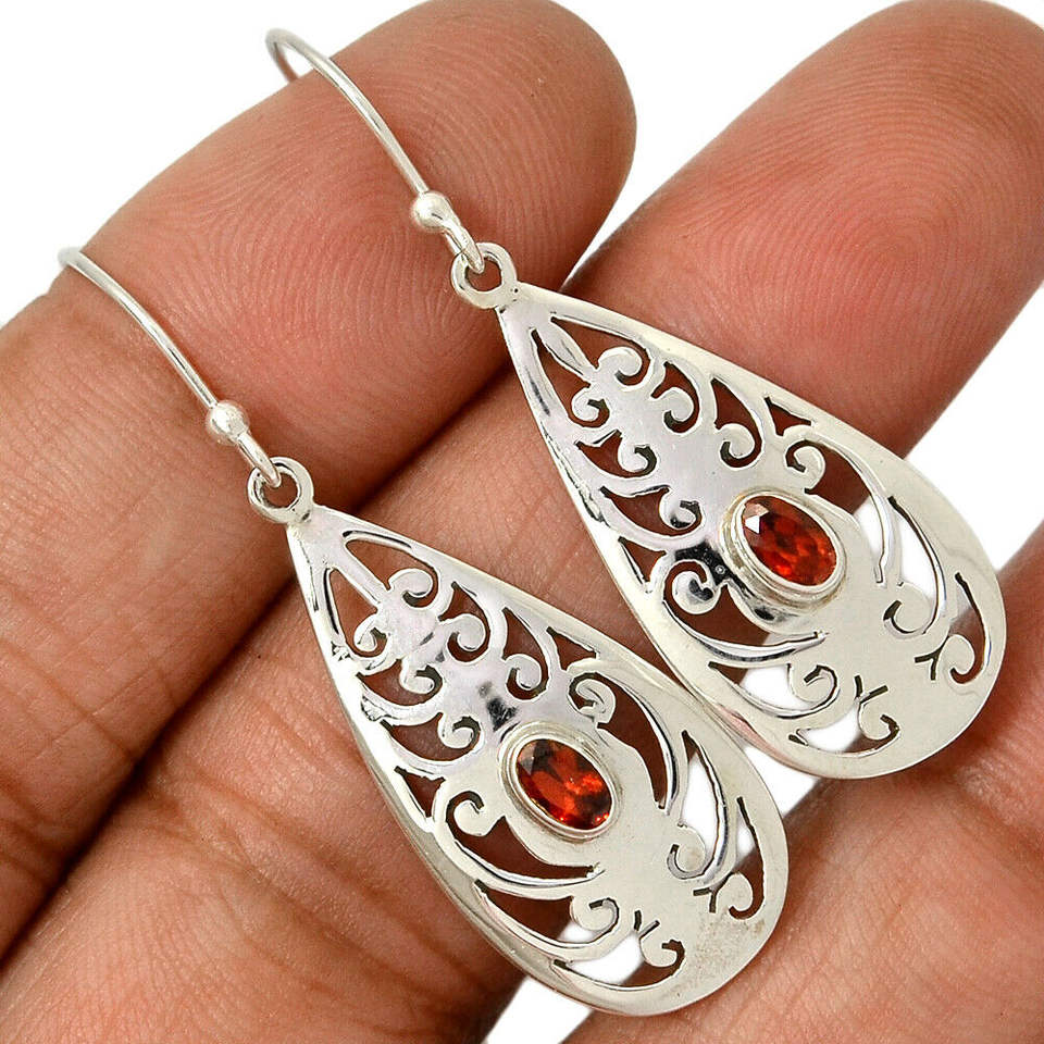 Nombre del Producto:Pendientes Artesanales de Granate, Joyería de Moda en Plata.